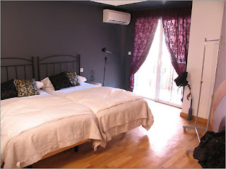 minimal decor and furniture create a calm bedroom environment. take note, the only pattern in this room is from the accent pillows on the bed, very serene