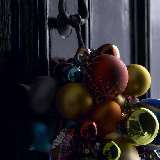 Pile up all the ornaments you are not using on your tree. The key here is to stick to one or 2 colors and vary the sizes. You can mix in some sheer white tissue paper or batting to help the ornaments stay in place and it will also act like a bit of faux snow!